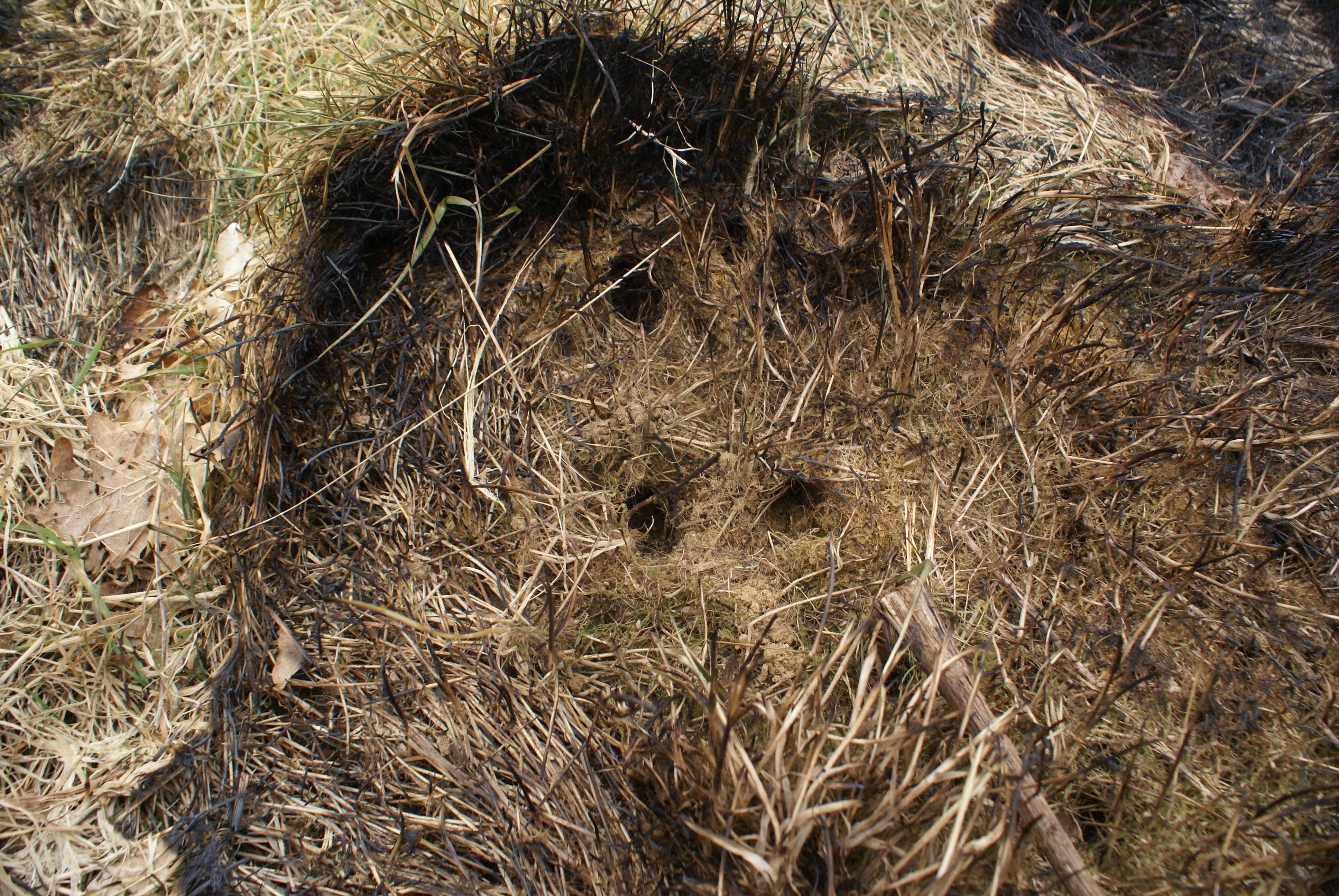 Vole habitat beneath fire damaged sward