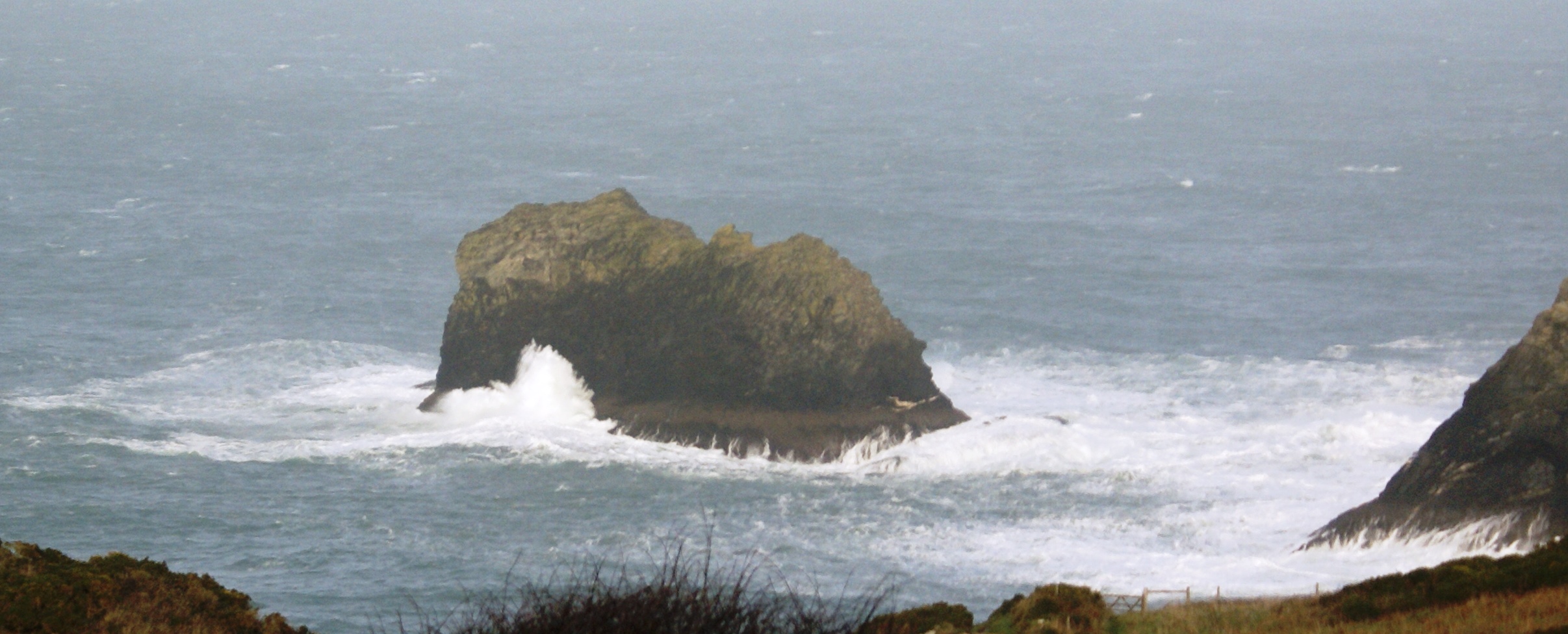 Yesterday we were at Tintagel, Cornwall, in a magnificent gale, shouting greetings to fellow walkers with excited wind-tousled dogs. We watched the huge swell and the breakers hitting the offshore islands and sending spray 60 feet into the air.