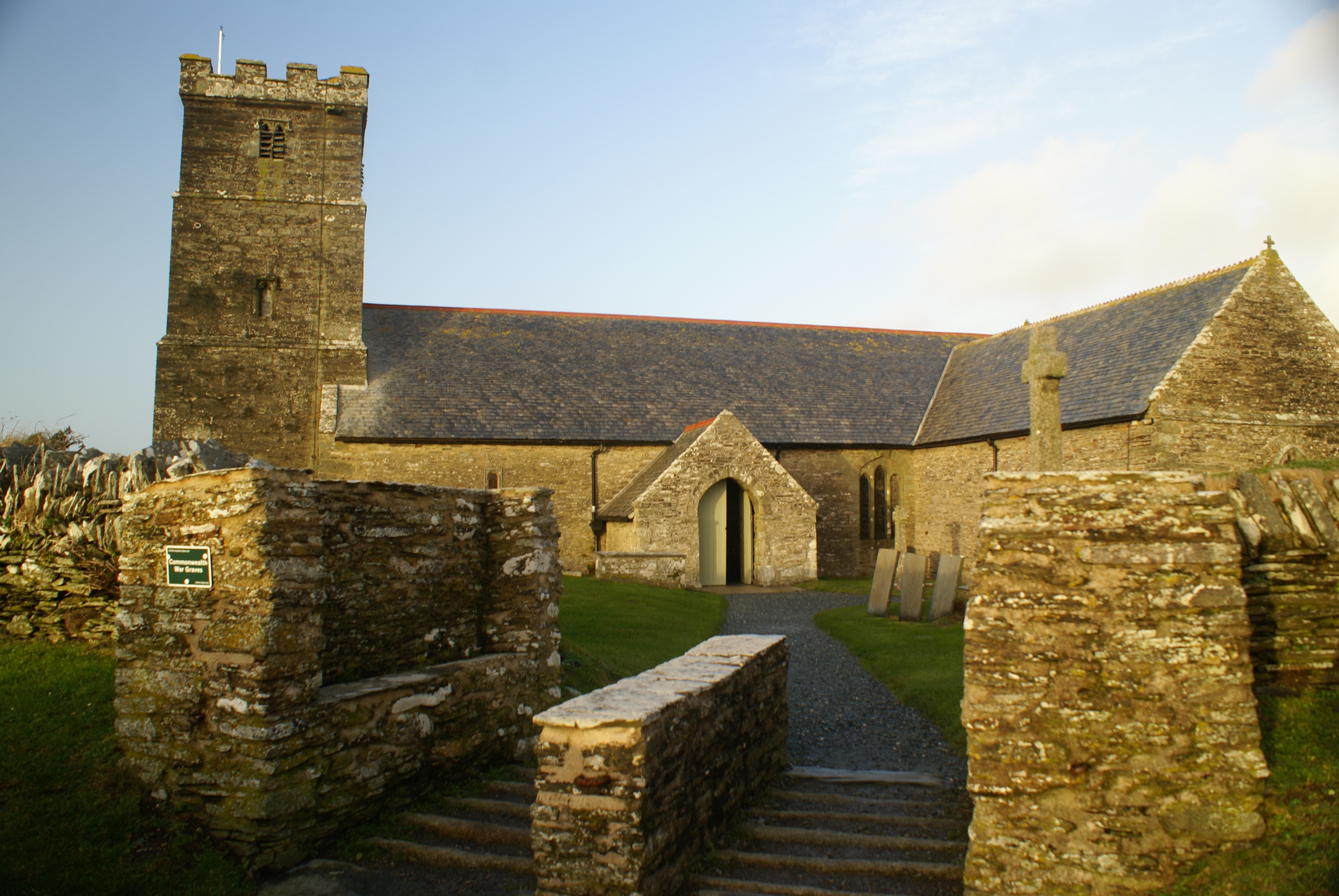 As we drove away we caught sight of a small church on the cliff and we were drawn to look. Here it is — St Materiana’s (that’s the same Madrun — she ended her days in Cornwall)