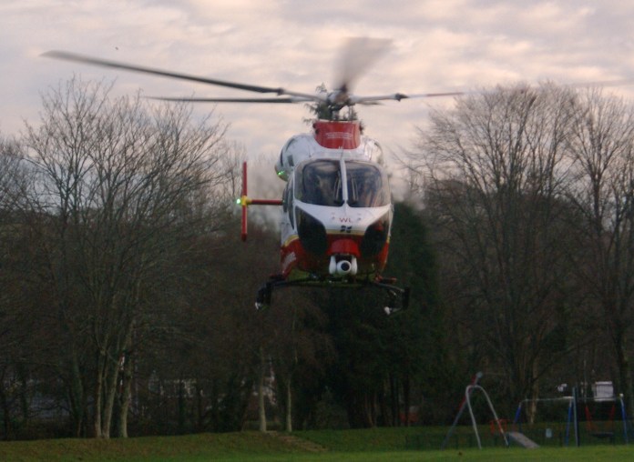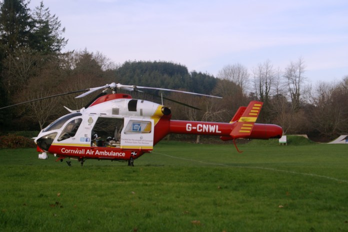 50 yards from the house we found the source of the row — a Cornwall Air Ambulance –come to pick someone up from the adjacent medical centre.