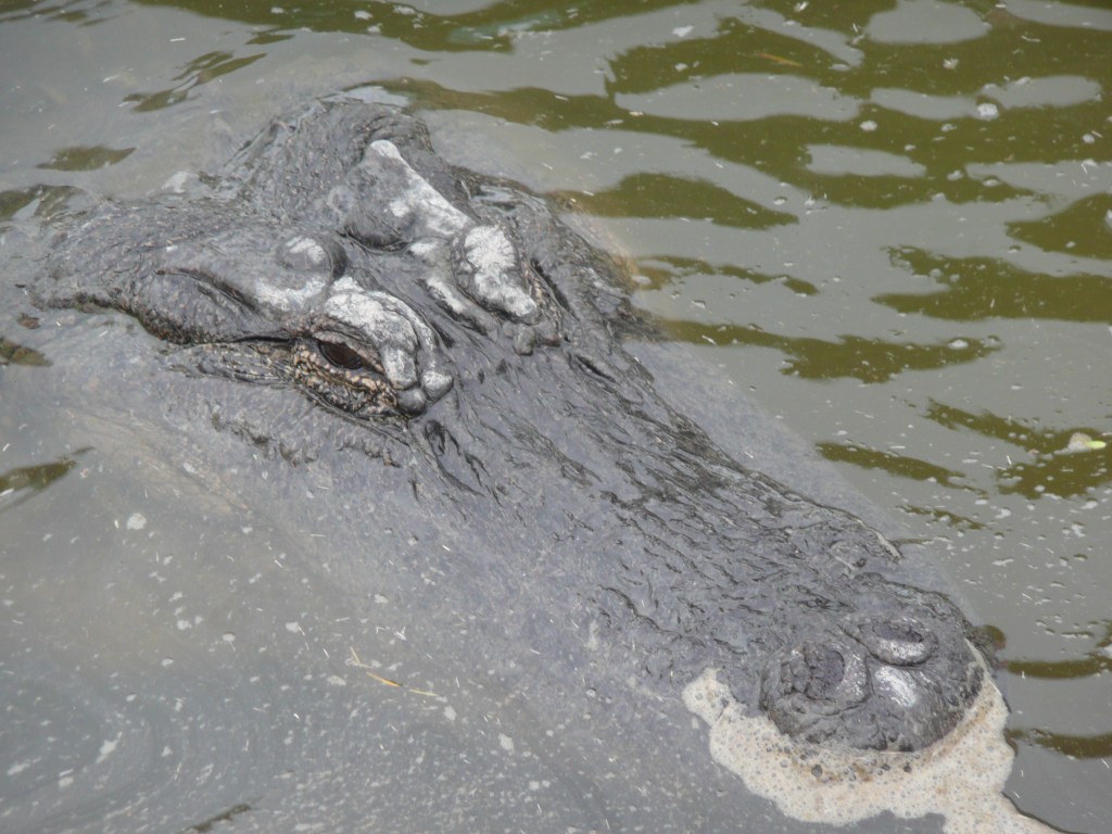 How had it reached this isolated peninsula dotted with lakes, one of the few places left where the whooping cranes can feed and breed? It had swum across the shallow waters of the bay to enjoy the peace and gorge on the rich vegitation, crustacea, toads, tortoises, birds eggs and reptile eggs, and to present the guardians of this habitat with a real problem.