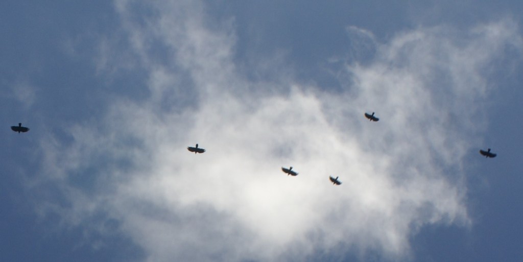 This time we went looking on Anglesey in North Wales. Almost the moment we got out of the car we were treated to a flypast — 16 birds all calling out their name!
