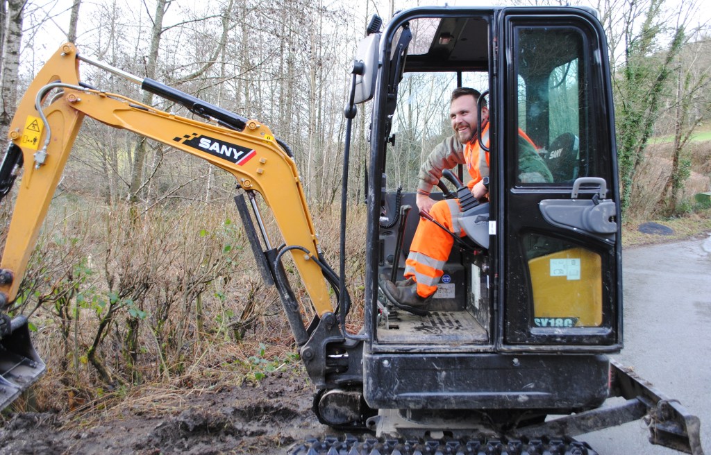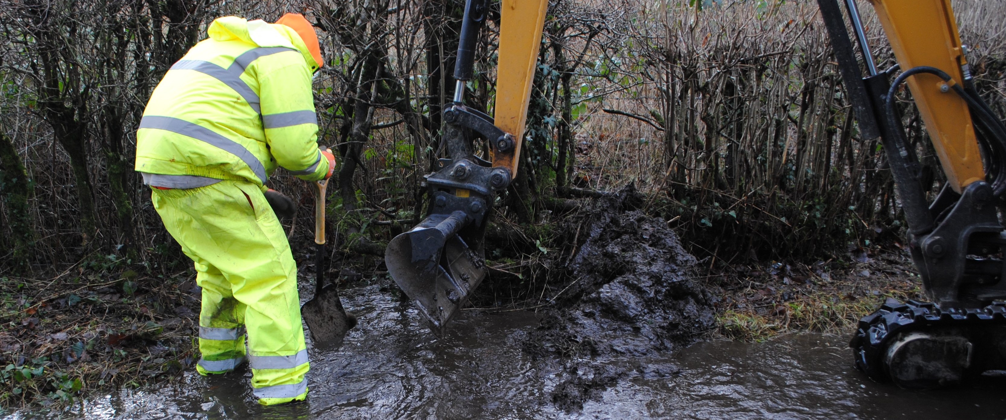 Powys Council Superheroes Dafydd and Jamie, mobilized from Llandrindod Wells, have braved the elements to unbung our culverts and release our flood water — the valley reverberates with satisfying glugs, gurgles and the sound of rushing water!