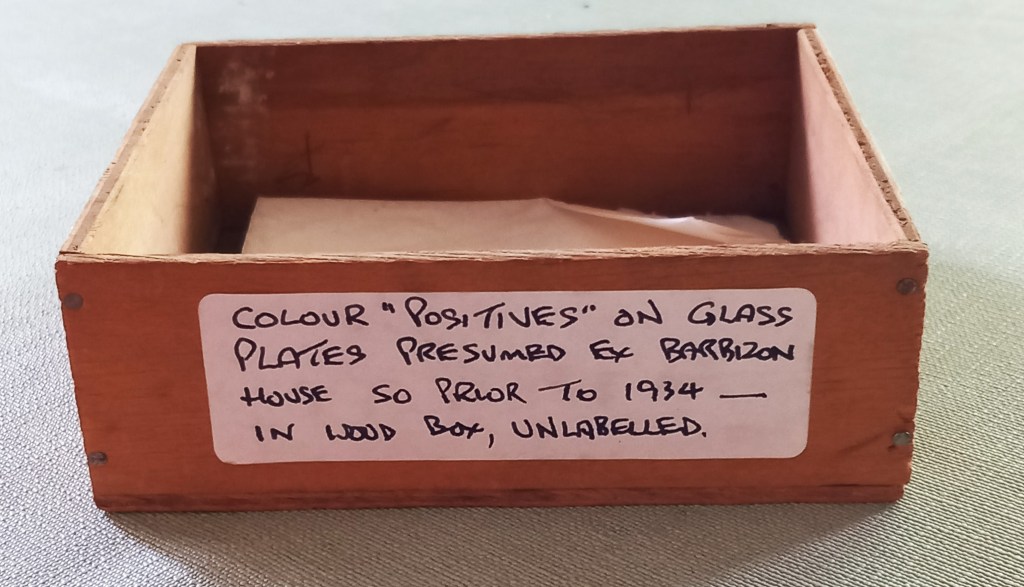 I decided to sort out my grandfather’s bureau which I’d been meaning to do since my father died in 1992 and I found this little box which Dad had meticulously labelled when going through the same process after his own father’s death in the early 70’s. It contained colour photo slides on glass. I held them to the light but couldn’t make out the subjects but they definitely weren’t holiday snaps. Was I to pack them back in the draw and leave them another 50 years and a new generation?
