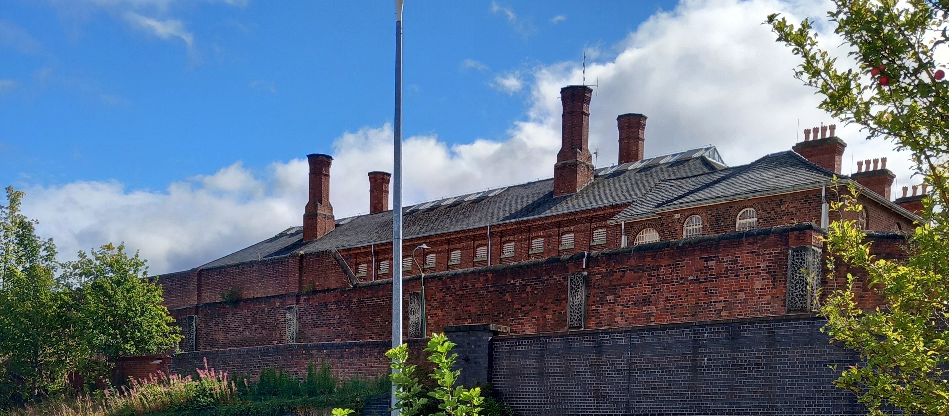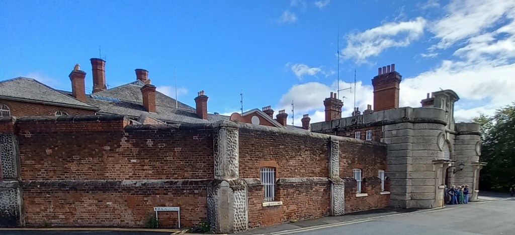 Shrewsbury Prison is a smouldering presence above the carpark, built in 1793 by Telford, designed by local architect John Hiram Haycock and William Blackburn, advised by John Howard the famous prison reformer who looks down from his plinth above the gate. You can book a tour and even stay the night in a cell, “That’s an idea!” says I with my Granny hat on.