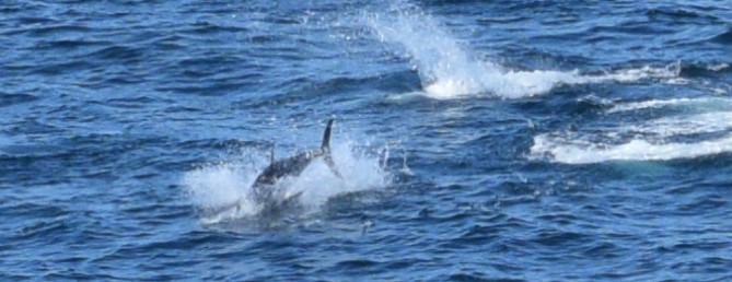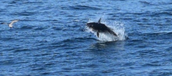 A disturbance — turbulence in the water and excitement amongst the sea birds, swooping above the swirling and splashing.