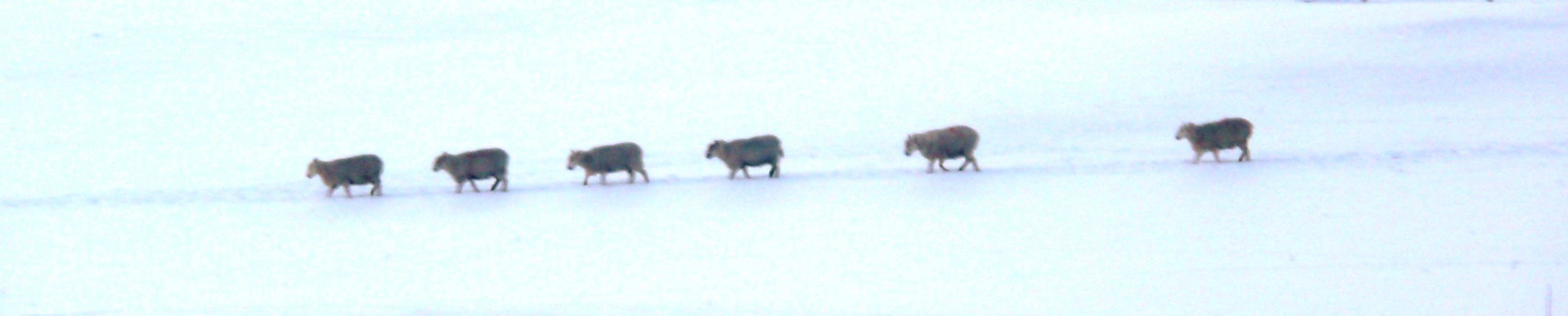 Remember Gladys ( our ‘should have been left for dead’ lamb — the one with economy ears but huge determination to survive)? Well, on our final trip to the barn she passes us, heading after the others, away from the scene and up the hill, far away from the mother’s field, tossing her head as if to say, ‘We’re grown up now — we’re off up the top!’