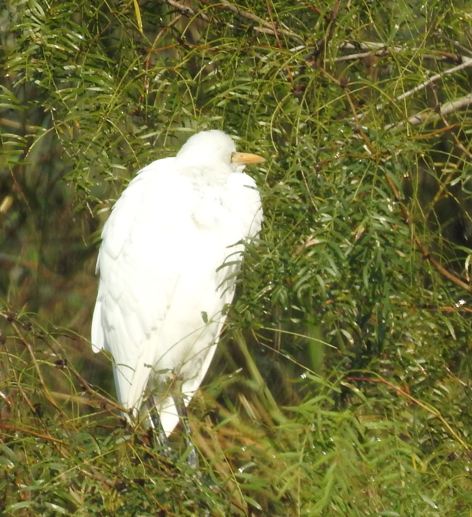 Here is a snowy egret for comparison — note the black bill, these are limited to the Americas and are very territorial in the breeding season when they display noisily, pointing their bills skyward and bobbing up and down to the great interest of other egrets gathered to watch. They also tumble in the sky in their attempts to attract a mate.