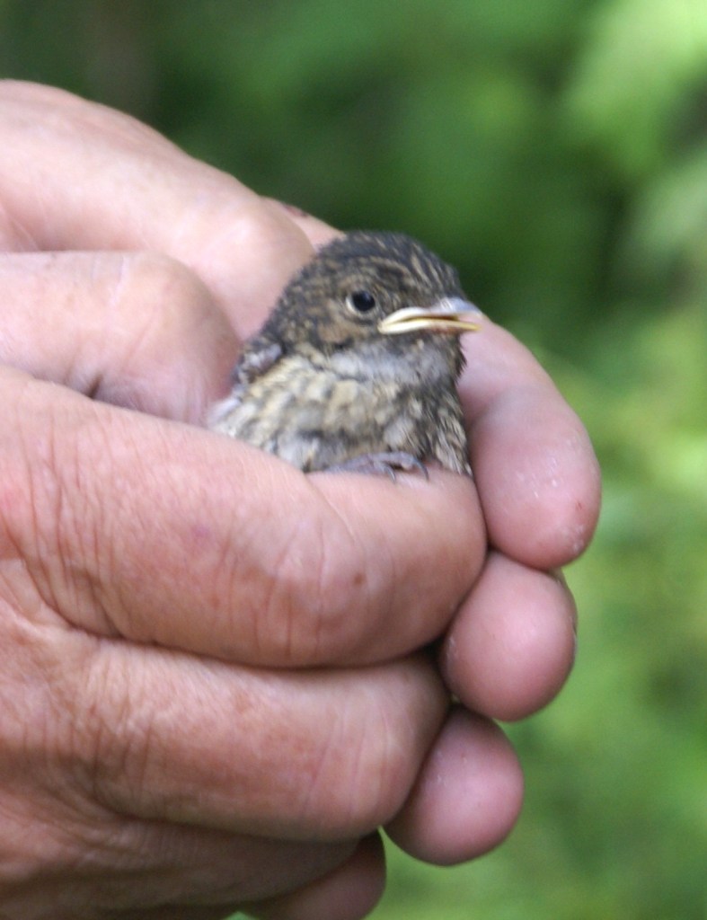 They also ringed a treecreeper fledgling hopping about and keen to be included. They tend to nest in the holes between the roots of the oak trees and in the deep splits in trunks, we watched one earlier this year taking lots of spiders to a nest on the hill.