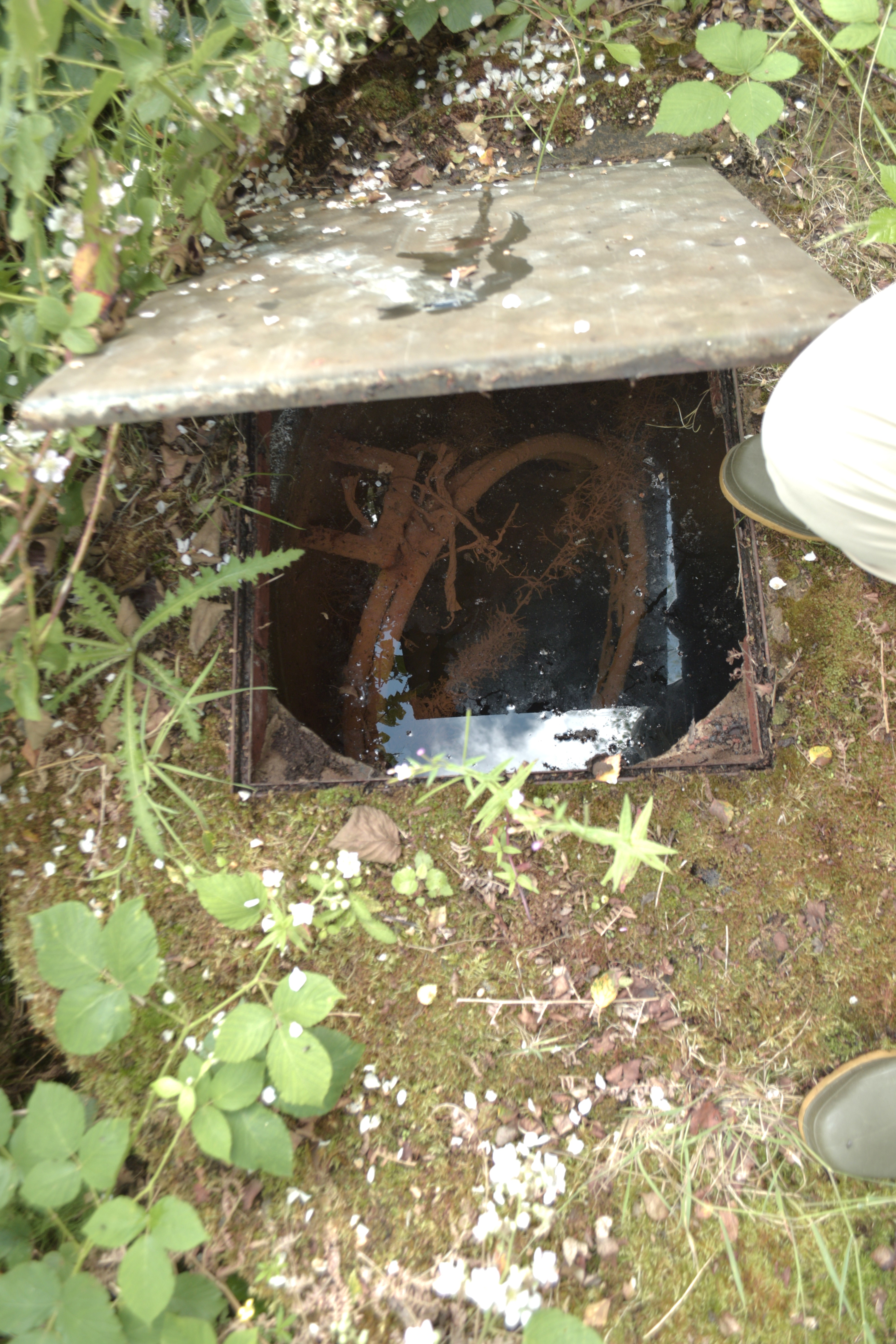 This is the time of the year when we regularly lose our well and it is quite important that we find it in its nest of horsetail ferns and overgrown by all this burgeoning diversity. Here it is and it’s full.