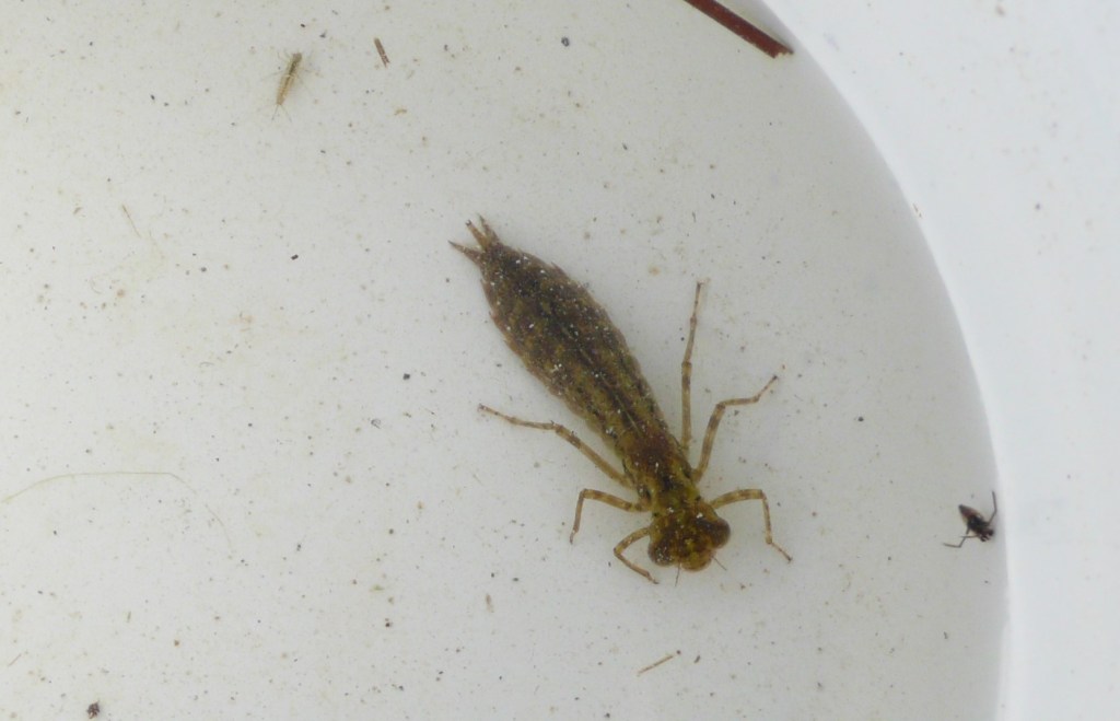 This fierce chap will gobble up lots of other pond life and slowly grow over several years then change into a large Dragonfly that will flit around above the pond and stream for a season finding a mate and they will lay eggs to start the whole process again.