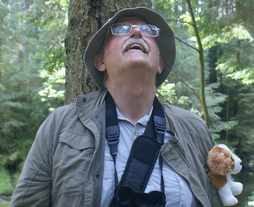 We haven’t been out today because it is raining but spotted a bunny on the lawn. Bill went out to photograph it for Ben.