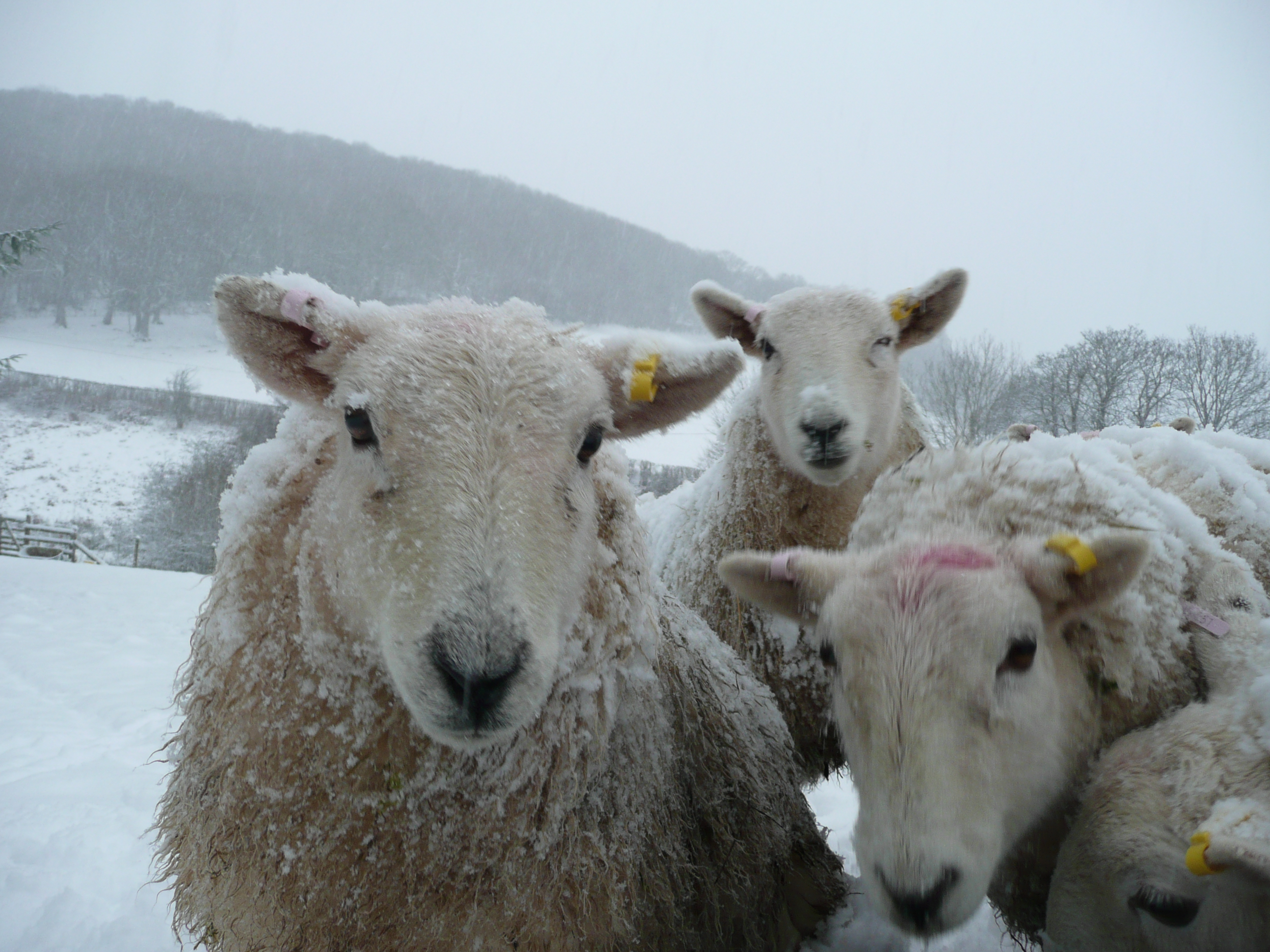 We take nothing for granted; our water which is golden, comes from a well, half a mile from the house up a steep hill. In the recent relatively dry weather we have cut a track to it so that when filters block or tadpoles appear in the bath we can reach it without angina on our four-wheel-drive, but not so trusty, quad-bike. We don’t take that for granted either; last winter it also developed a blockage; outside it was seriously sub-zero for months so that ones ungloved fingers froze to the metal gate latches and to the carburetor of a quad-bike. I took the feed to our 30 odd sheep every day on foot, well mainly on foot, quite often on bottom. In fact I soon rediscovered the joy of sliding back to the cottage on the empty feed-bag, pursued by an excited and snowy-nosed dog and watched by puzzled sheep (pictured).