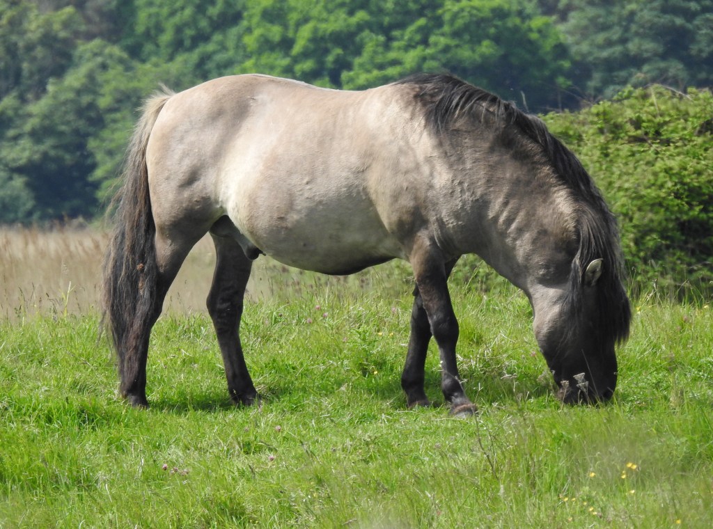 Wild horses would not drag Bill from the reserve but the promise of a glossy ibis was too much and we ventured out towards the dome of Sizewell B on yet another wild-ibis-hunt but we did see this fine wild polish konik stallion who looked as if he belonged on an ancient cave painting — look at the thickness of its neck. Not really wild but hardy and not picky when they graze and they don’t mind having wet feet — they were purchased to graze this marshland reserve and tick another conservation box.
