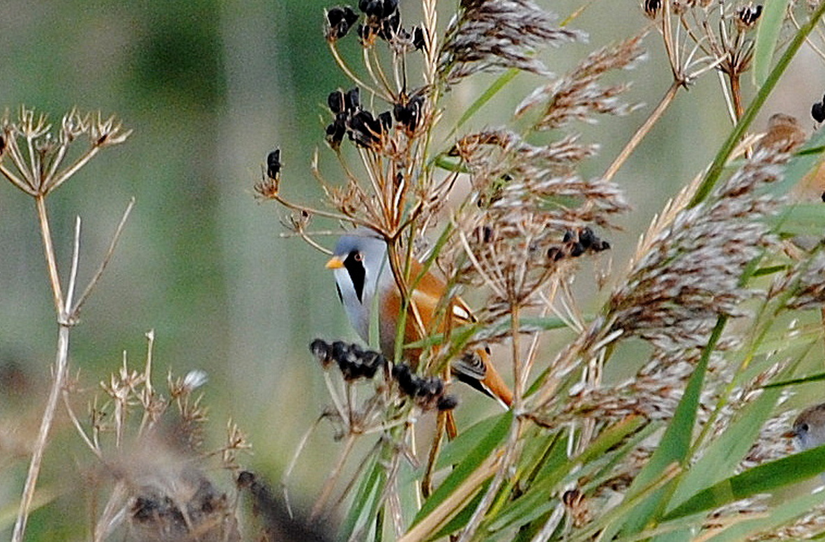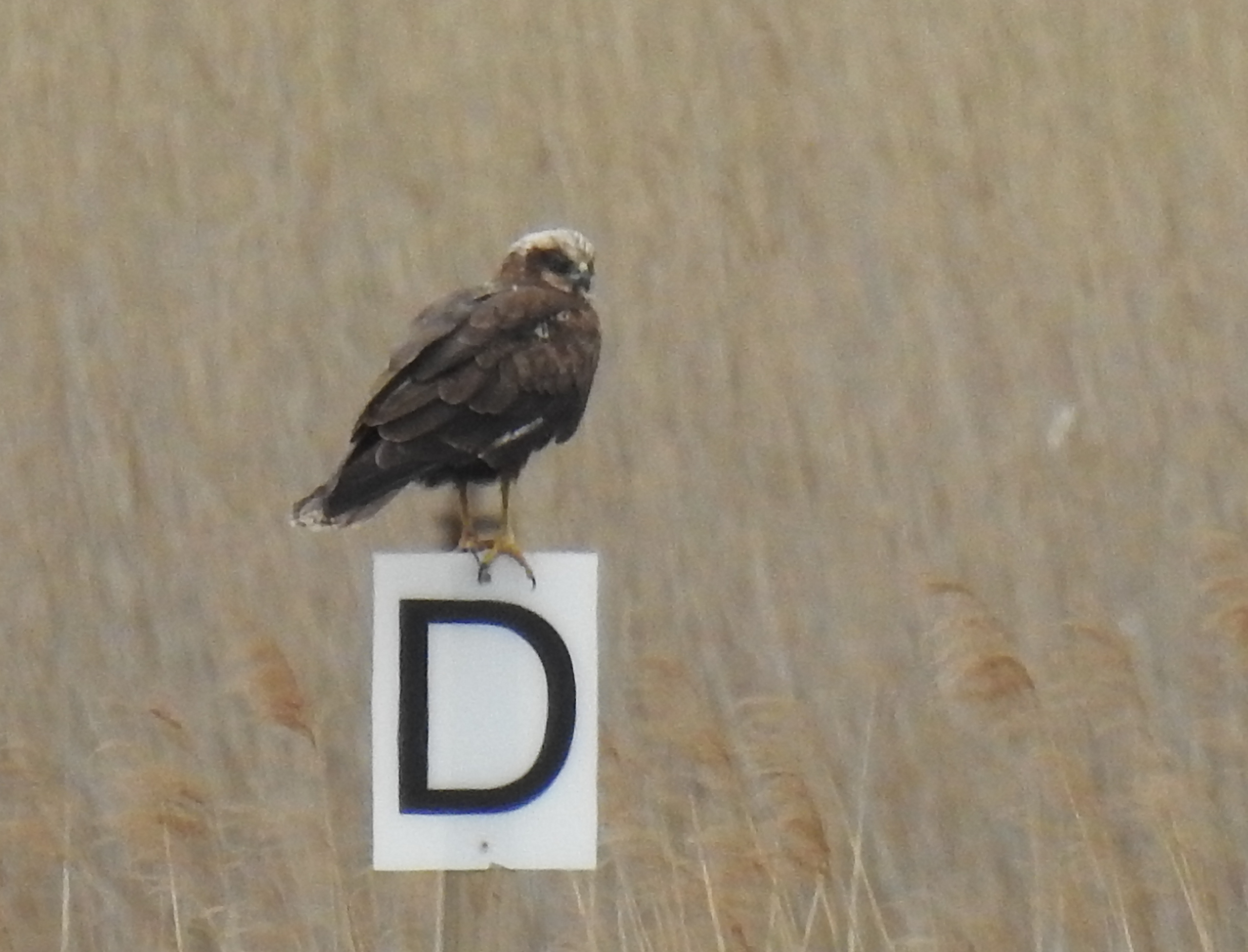 He is not holding up a grade for artistic merit (which was an A) but sitting on a marsh label so that other watchers in the hide can say ‘BITTERN — flying left to right above D’ and I can still miss it. Here is something else I had difficulty in seeing clearly although he was definitely there, flitting about in the reeds: bearded reedling… not a tit!