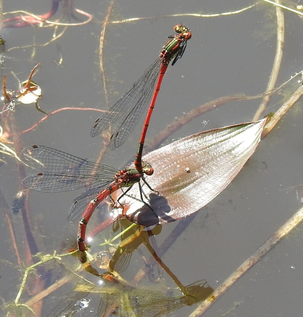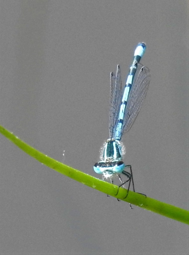 You will see lots of blue damselflies around the edge of our pond — they are not so territorial and don’t spend their time fighting.