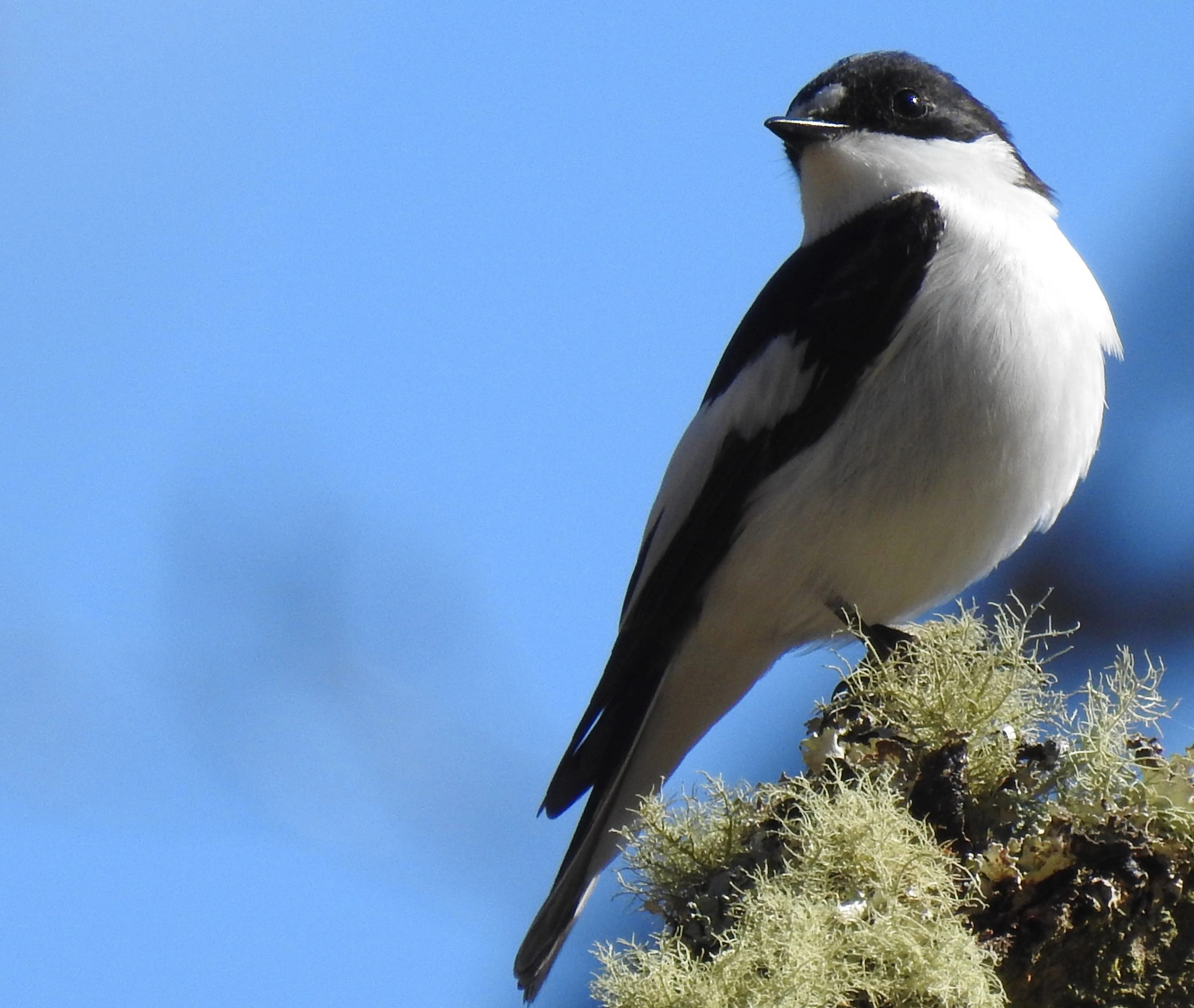 We have become enchanted by the Pied Flycatchers, Bill checks them out every day, this one we call Orca.