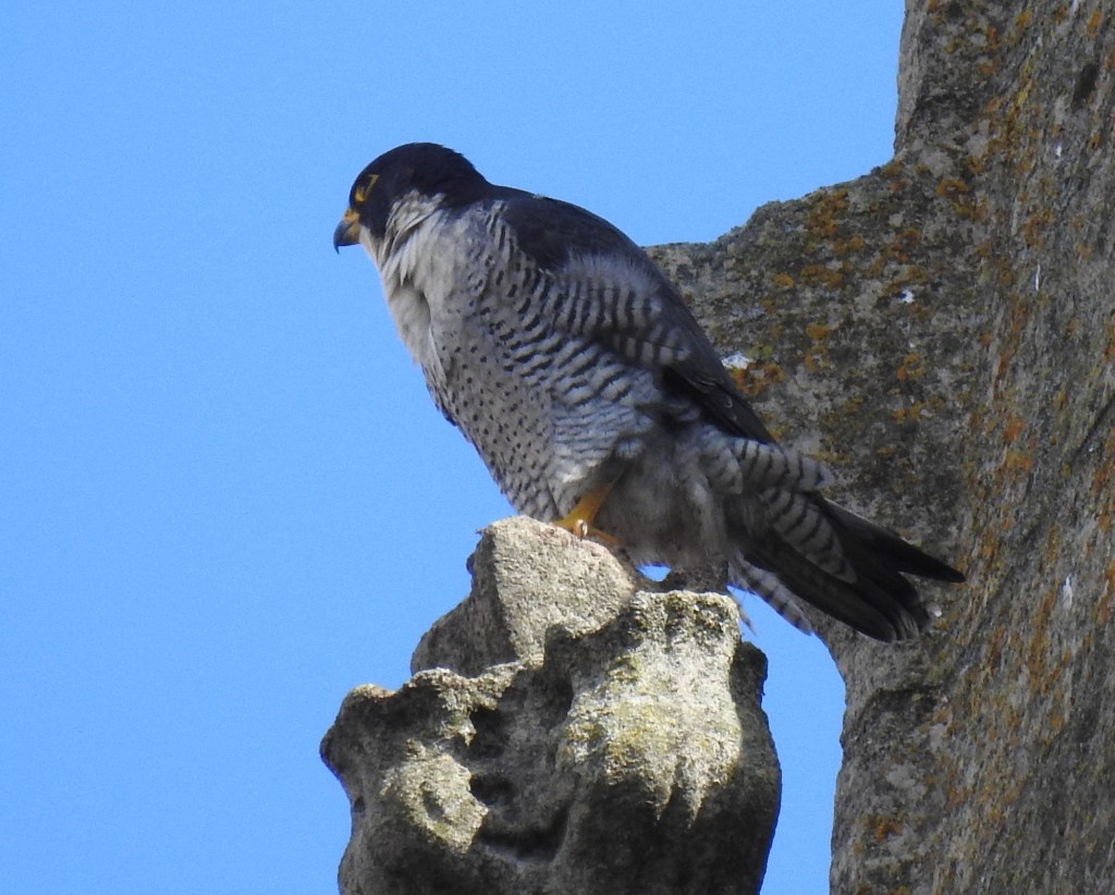 The peregrine falcons, thicker set, which are common place in Kettering are conspicuous by their absence in Mid-Wales although we saw this one on the flood plain of the Dyfi estuary and have seen one in the Elan valley.